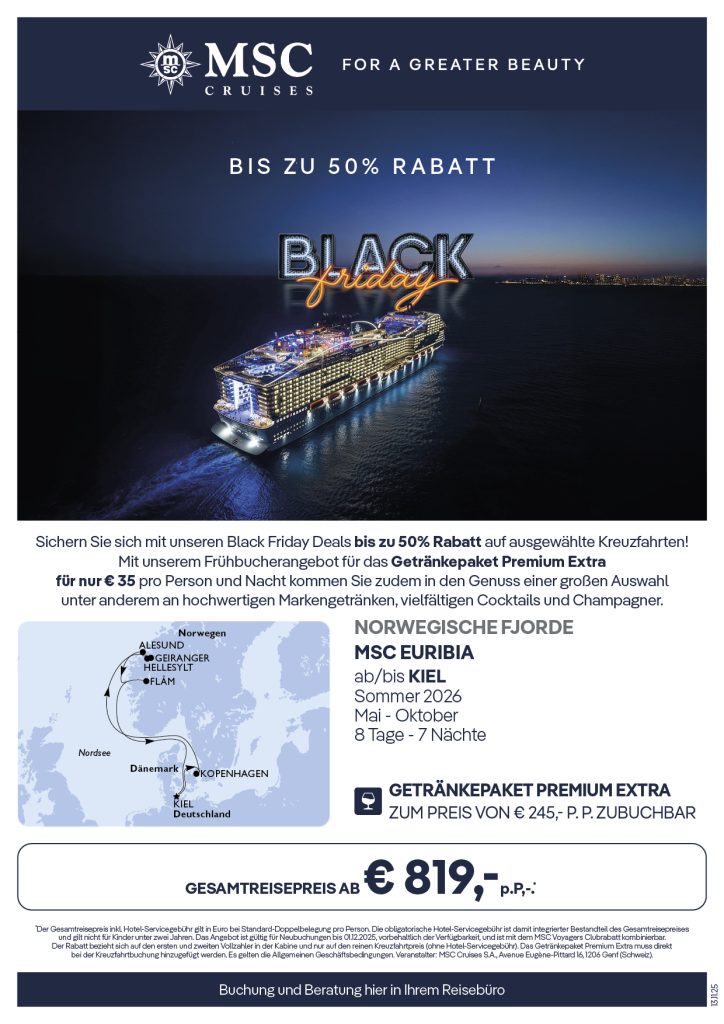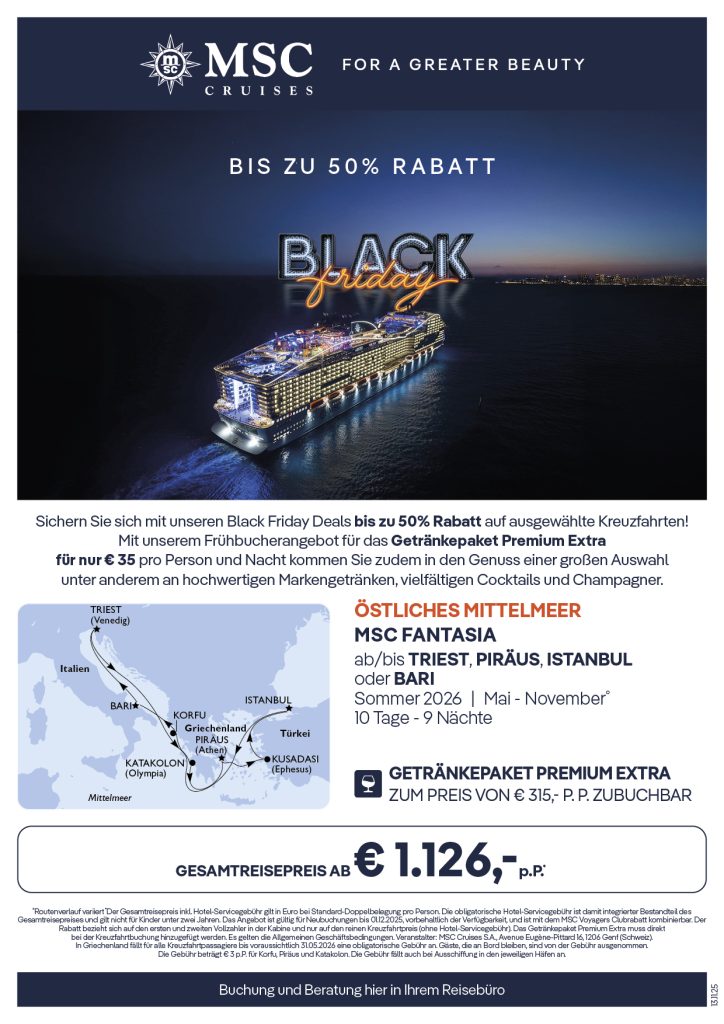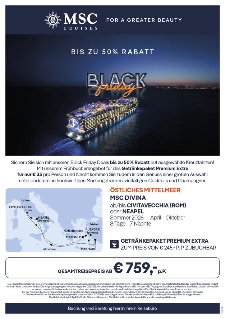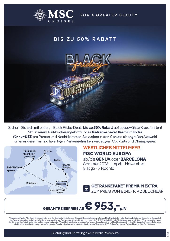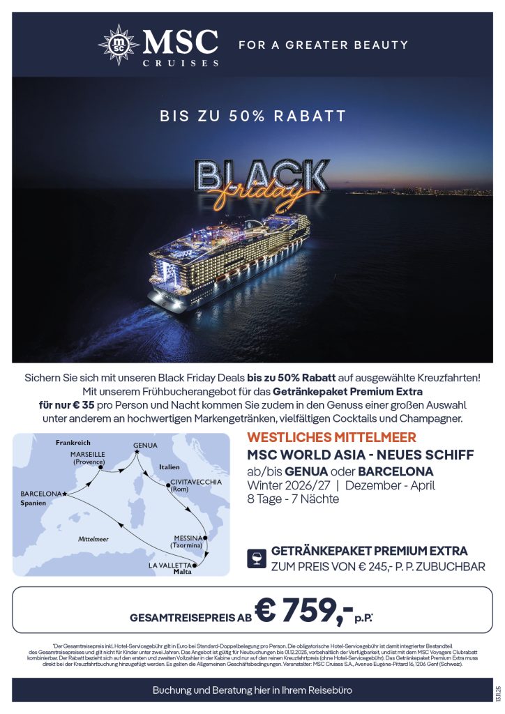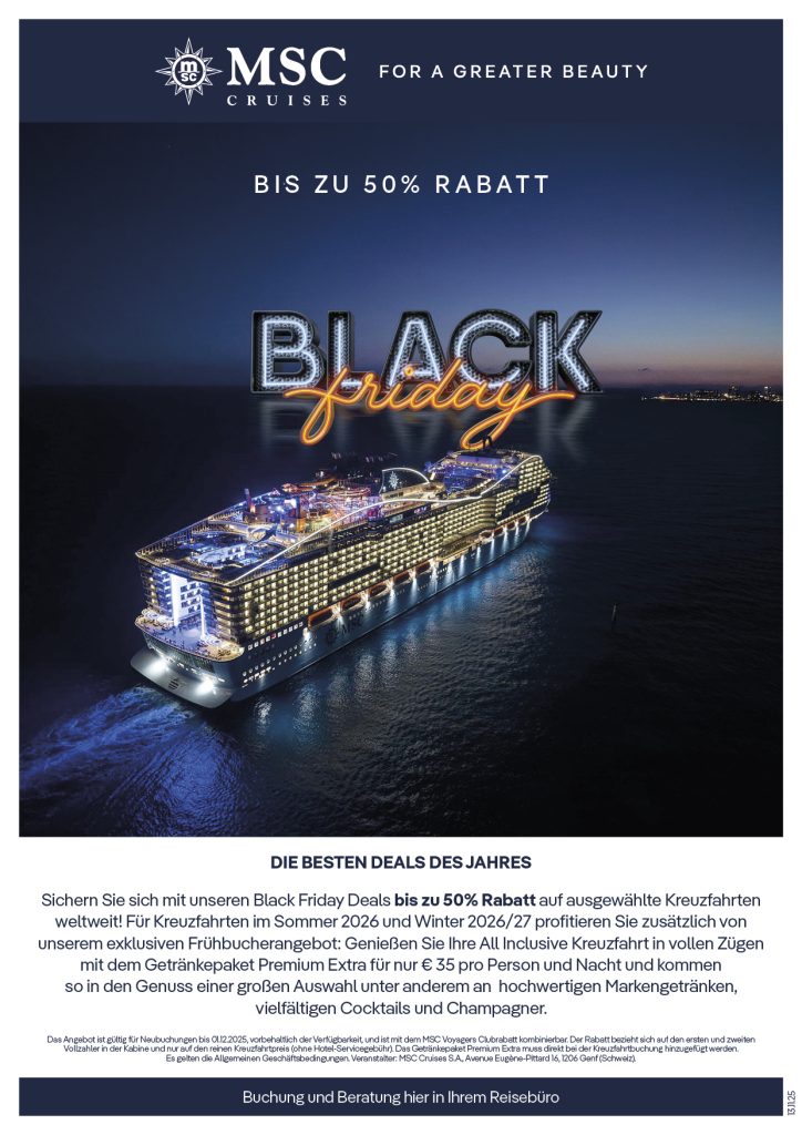 MSC Cruises Black Friday Angebote (gültig bis zum 07.12.2025)