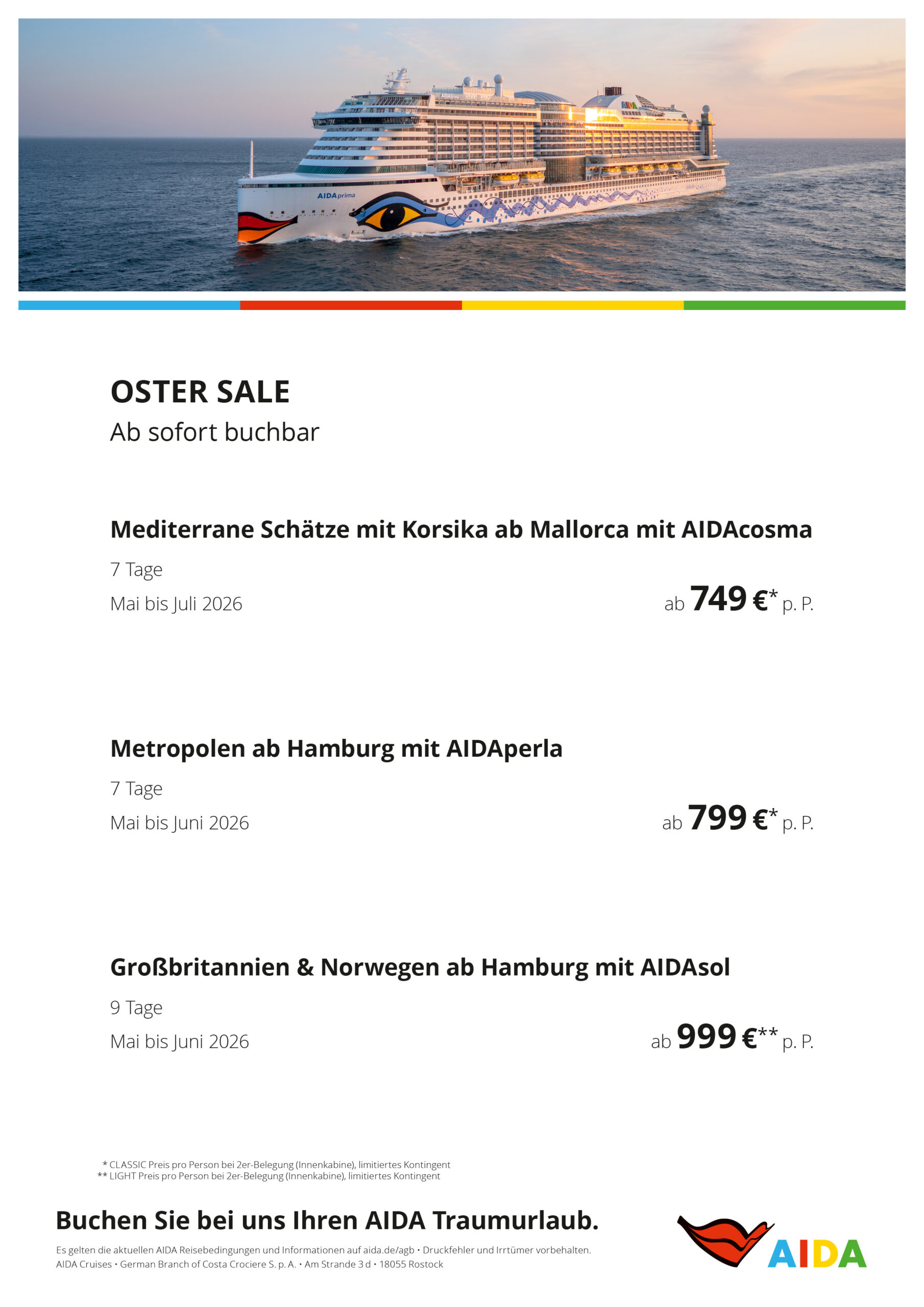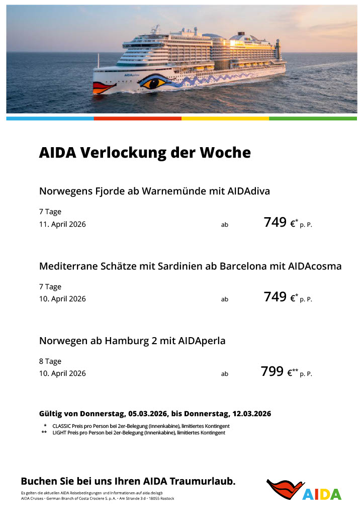 AIDA Cruises: Verlockung der Woche, (immer gültig von Fr. bis Do.)